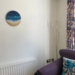 The 'cliff top' ocean view features layers of turquoise 'water' washing over sandy, beaches. These layers of pigmented resin give a gorgeous depth of colour and metallic lustre to each ocean I paint.