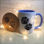 Paw Print ceramic mugs with hand decorated coaster and choccy treat!